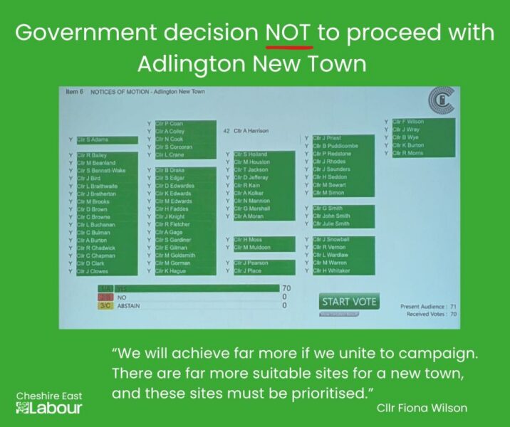 Labour Councillors welcome Government decision not to proceed with Adlington New Town